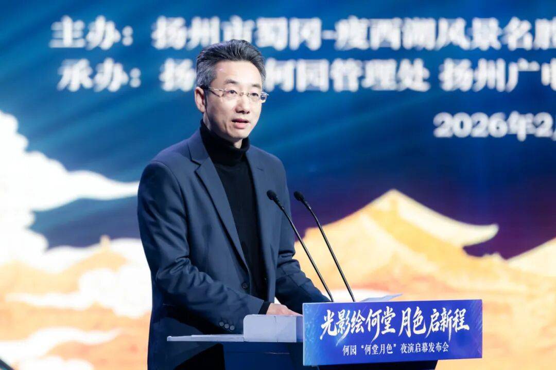 宣传片播放完毕,景区党工委委员、管委会副主任王青海上台致辞,高度评价“何堂月色”夜演项目,称其将为扬州文旅产业高质量发展增添新亮点、注入新动能。